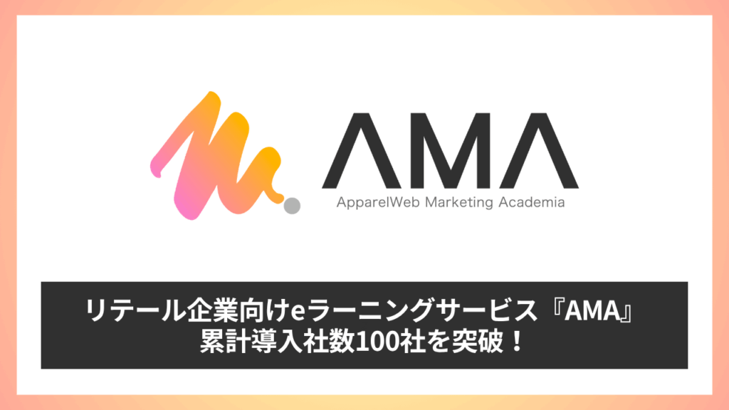 株式会社アパレルウェブ(本社:東京都中央区、代表取締役社長:小平 勝也、以下アパレルウェブ)は、リテール企業向けeラーニングサービス『AMA』の累計導入社数が、この度100社を突破したことをお知らせいたします。