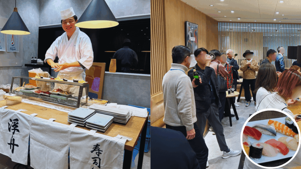 板前が握るお寿司とケータリングをお楽しみいただきながら、情報交換や名刺交換のひとときをお過ごしいただけます。